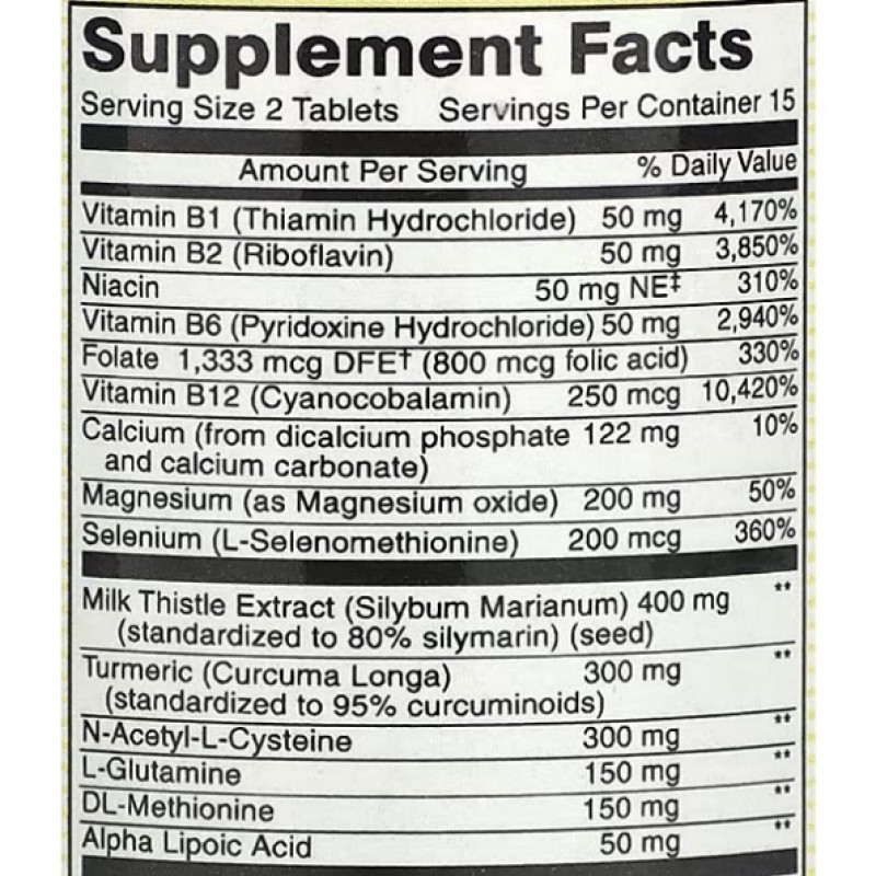 Этот продукт сочетает сбалансированную формулу, состоящую из витаминов и уникальной смеси ингредиентов для здоровой функции печени. Они оказывают антиоксидантную защиту и нейтрализуют токсины, препятствующие здоровому функционированию печени. Молочный чертополох (Расторопша) – не только поддерживает здоровье печени, но и держит в норме холестерин в крови. Расторопша также способствует регенерации клеток печени. В формулу был добавлен L-глютамин - он играет важную роль в утилизации аммиака, как токсичного продукта обмена белка в организме. Кроме того, комплекс содержит такие питательные вещества, как N-ацетилцистеин и метионин, действие которых направлено на продуцирование глутатиона. L-глутатион – это ключевой элемент процесса детоксикации печени, а также предшественник глутатионпероксидазы, основного фермента, поглощающего свободные радикалы.