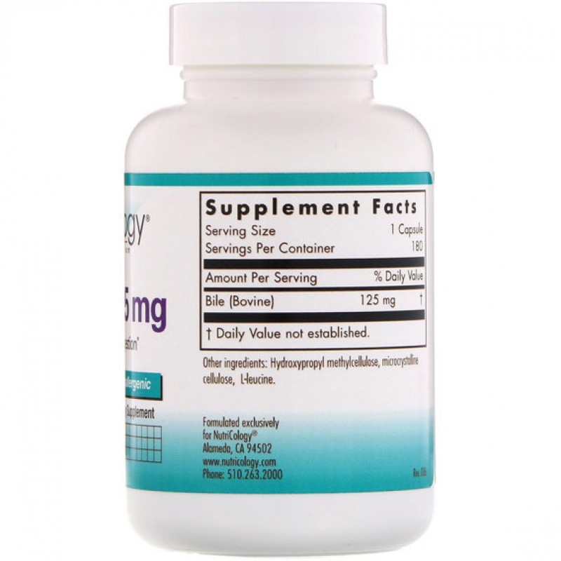 Экстракт бычьей желчи, Nutricology производится из печени крупного рогатого скота. Рекомендуется для очистки и укрепления печени, что в свою очередь помогает в очистке циркулирующей желчи.