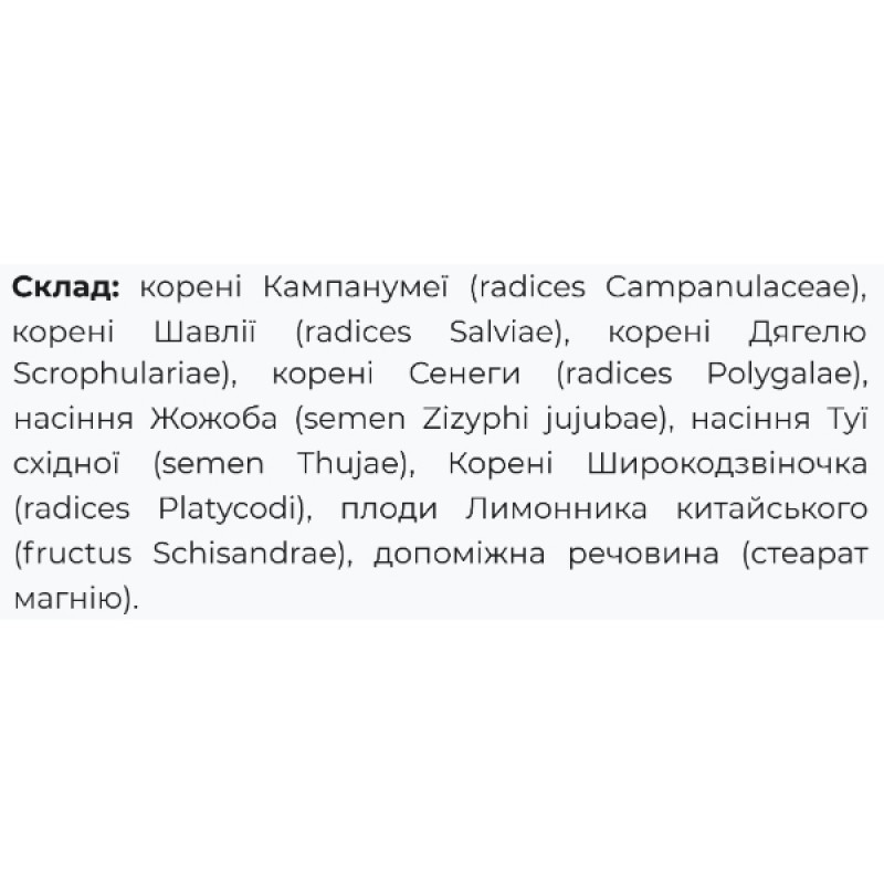 Группа лекарственных растений Дягель, Пория, Ремания, Кампанумея и Лимонник обладает успокаивающим и адаптогенным эффектом, стабилизирует нервную и сердечно-сосудистую системы, способствует быстрому засыпанию и продлевает сон.