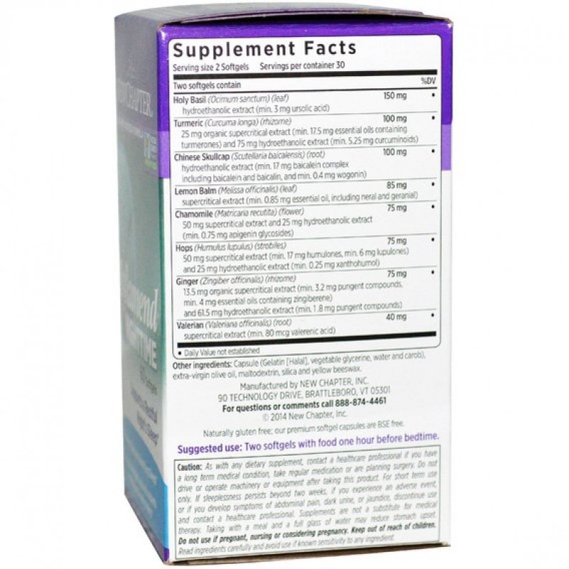 Zyflamend Nighttime, New Chapter эта быстродействующая пищевая добавка обеспечивает широкую поддержку организму при периодической бессоннице. Она включает расслабляющие аминокислоты, успокаивающий магний и «физиологическую дозу» мелатонина (чтобы воспроизвести его уровень, обычно вырабатываемый организмом каждую ночь). Вся продукция New Chapter производится в соответствии с требованиями FDA.