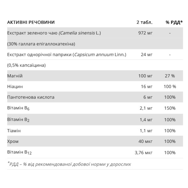 Экстракт однолетнего острого перца (Capsicum annuum Linn.) – содержит капсаицин. Капсаицин способствует выработке ферментов, участвующих в сжигании жиров, и ускоряет обменные процессы организма. Экстракт из острого перца помогает сжигать жиры, углеводы, стимулирует использование энергии, потерю калорий и снижает их усвоение.