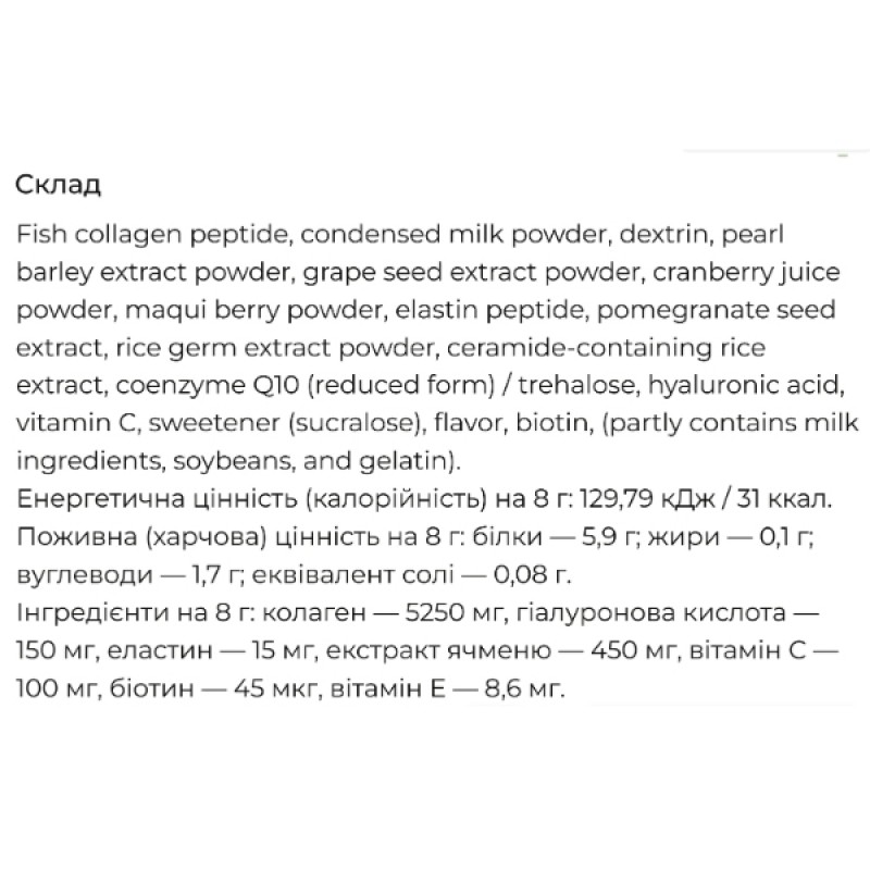 В составе коллагена содержится запатентованная уникальная смесь с омолаживающими свойствами, которая изготавливается на основе экстракта виноградных косточек, клюквы и ягод маки.