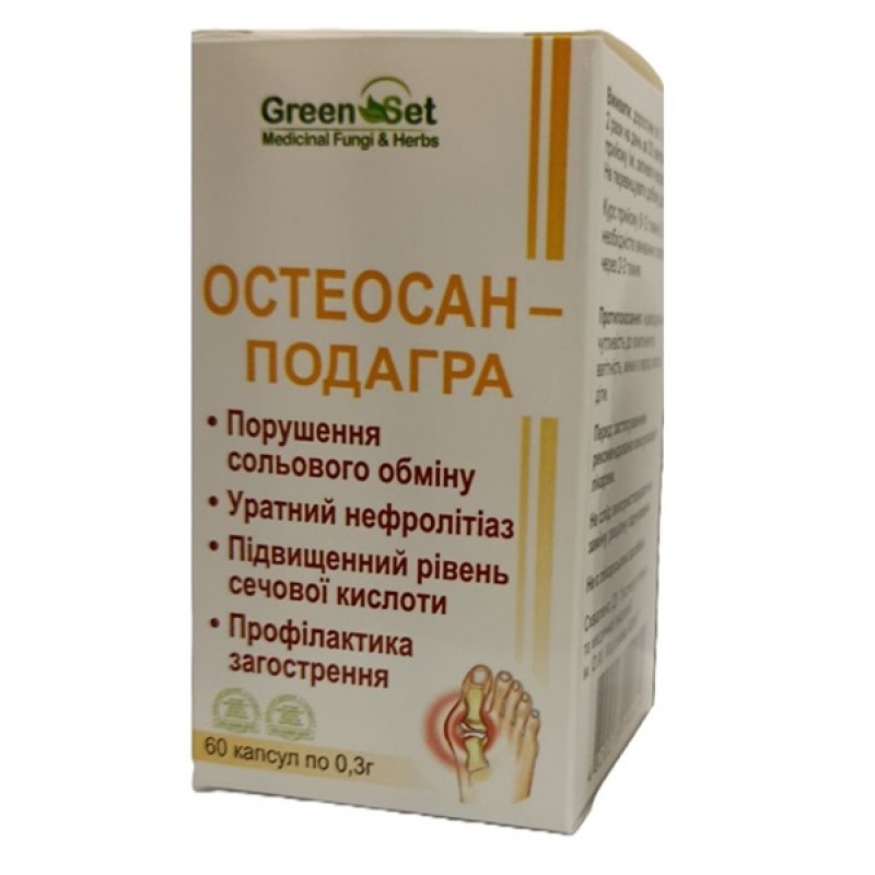 Растительный препарат «Остеосан-Подагра» предназначен для комплексной, базовой терапии подагры с дифференцированным подходом к профилактике ее обострения, а также для снижения риска развития уратного нефролитиаза. Обеспечивает нормализацию обменных процессов, в том числе углеводного и жирового, положительно влияет на пуриновый обмен, снижает синтез уратов, препятствует кристаллизации солей мочевой кислоты и их отложению в органах-мишенях и тканях; способствует повышению щелочности мочи, растворимости солевых конгломератов и их выведению, насыщению организма витаминами А, В1, В6, С, от которых зависит оптимизация и успешность лечения.