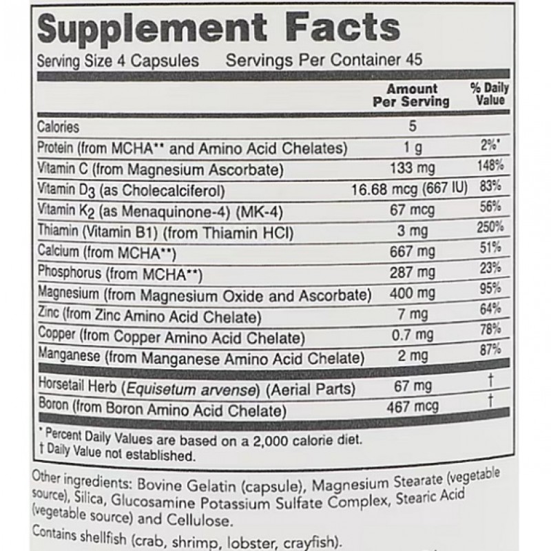 Комплекс питательных веществ из MCHA состоит из высокоусвояемого кальция и фосфора, которые являются основными минеральными компонентами костей, он обеспечит поддержку скелетной ткани, работы нервно-мышечной и сердечно-сосудистой систем, а также является хорошей профилактикой заболеваний позвоночника, артрита и ревматизма.