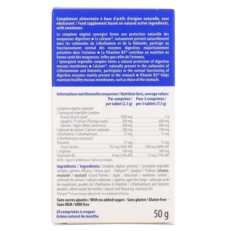 СТОМАКАЛМ® Рефлюкс в форме жевательных таблеток, с натуральным вкусом мяты, содержит:
