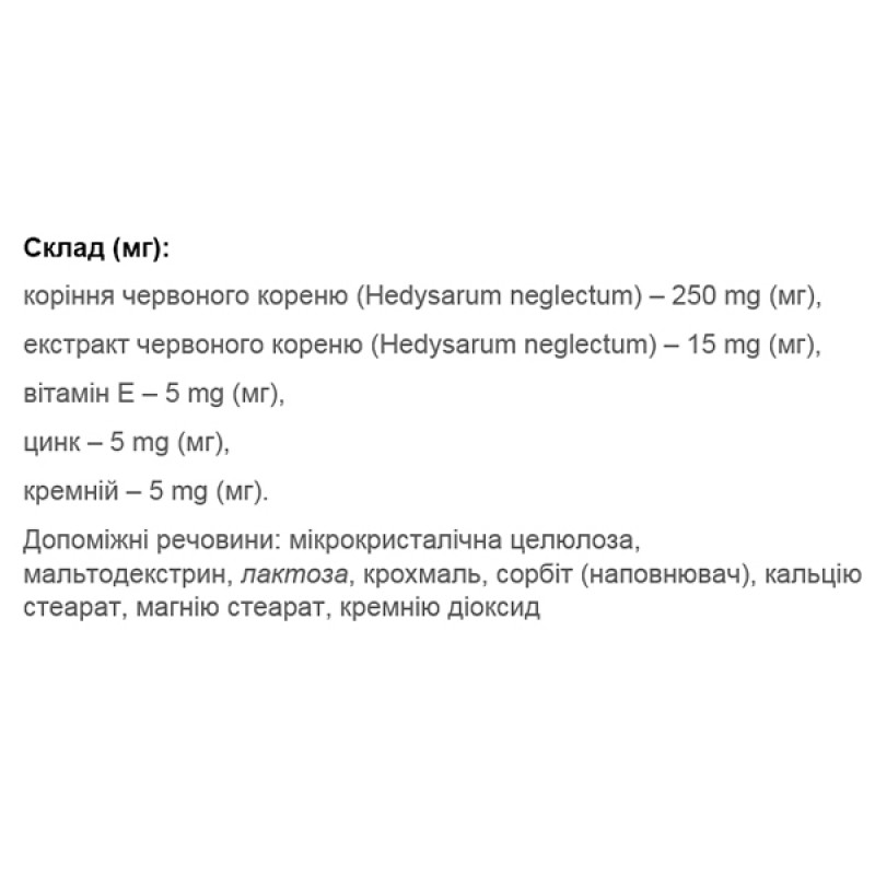 В состав препарата входят флавоноиды, дубильные вещества, красный корень, витамины и микроэлементы, обладающие противоополировальным, сосудорасширяющим, мягким диуретаринным действием.