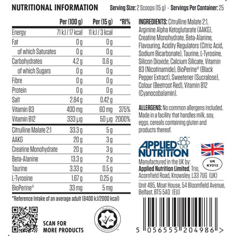 Applied Nutrition Pump Pre-Workout 3G Zero-Stim особенно рекомендуется к употреблению физически активным людям, спортсменам, бодибилдерам.