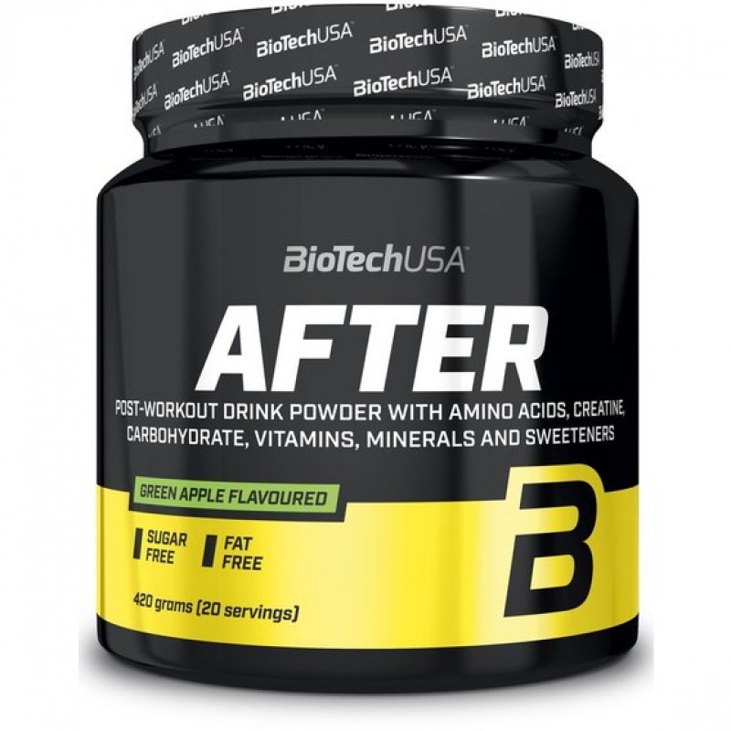 BioTech (USA) After – эффективный предтренировочник, разработанный американским брендом специально для профессиональных атлетов. Его основное отличие от других предтренировочных комплексов заключается в том, что кроме веществ, стимулирующих ЦНС и головной мозг, там содержатся компоненты, способствующие питанию мускулатуры и организма в целом. Эти активные агенты улучшают работу тела, обеспечивают его зарядом бодрости, ускоряют скорость восстановления после насыщенного тренировочного процесса.