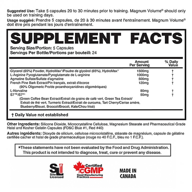 MAGNUM Volume – эффект пампинга (накачка)во время тренировки.
