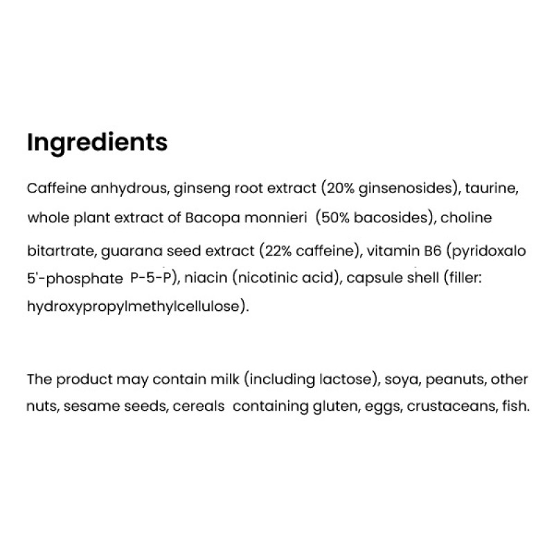 - Безводный кофеин - знаменитый стимулятор, помогающий повысить внимание, концентрацию и энергию без лишнего нервного напряжения.