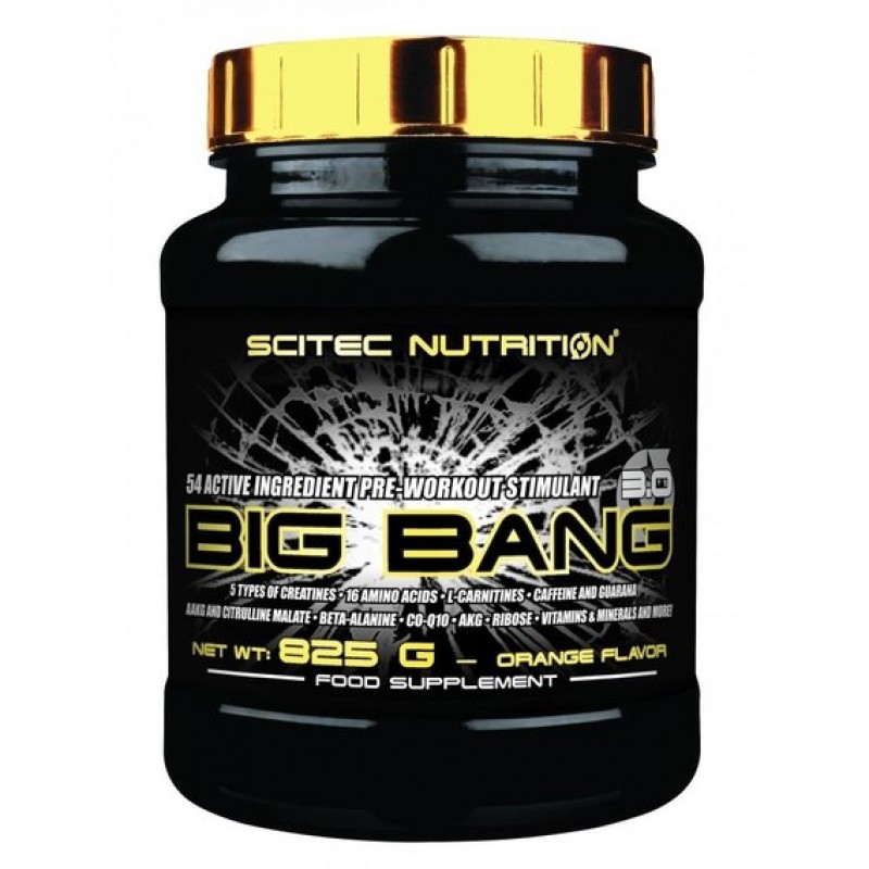 Big Bang 2.0 Scitec Nutrition – новый и очень мощный предтренировочный препарат, содержащий в своем составе 55-ть элементов, которые в совокупности действительно работают как большая бомба. Этот продукт имеет ряд лучших комплексов, они объединены в один продукт позволяющий стимулировать мышечную накачку и силу. В состав включены стимуляторы гормонов роста, увеличивающие метаболизм и улучшающие отклик мышц к росту и восстановлению.