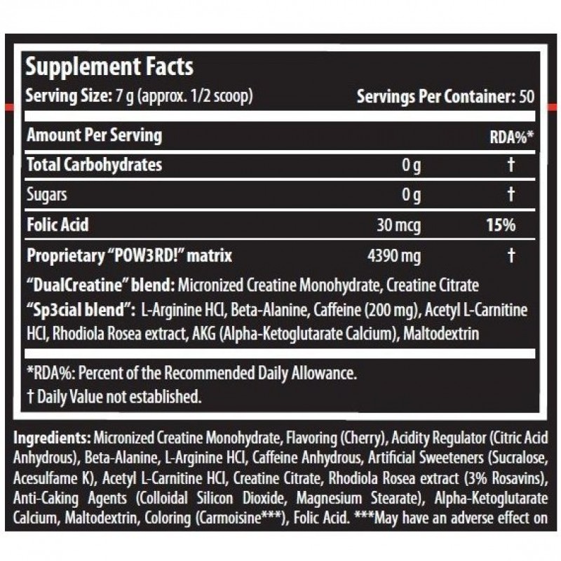 Каждая порция Pow3rd 2.0 содержит 4,390 мг фирменной POW3RD матрицы, которая состоит из: