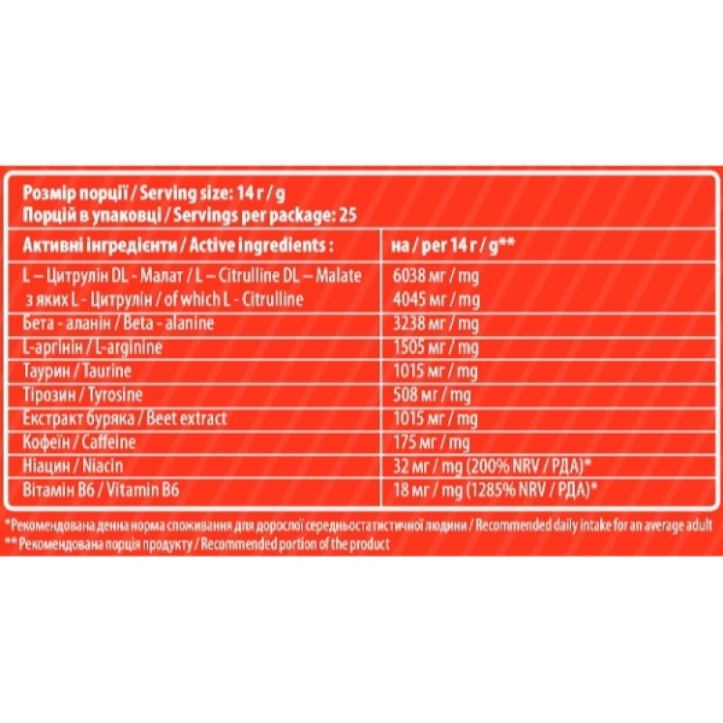 Способ применения: одну порцию 14 г (3 мерных ложки) растворить в 250 мл воды. Принимать за 30 мин до начала тренировки.