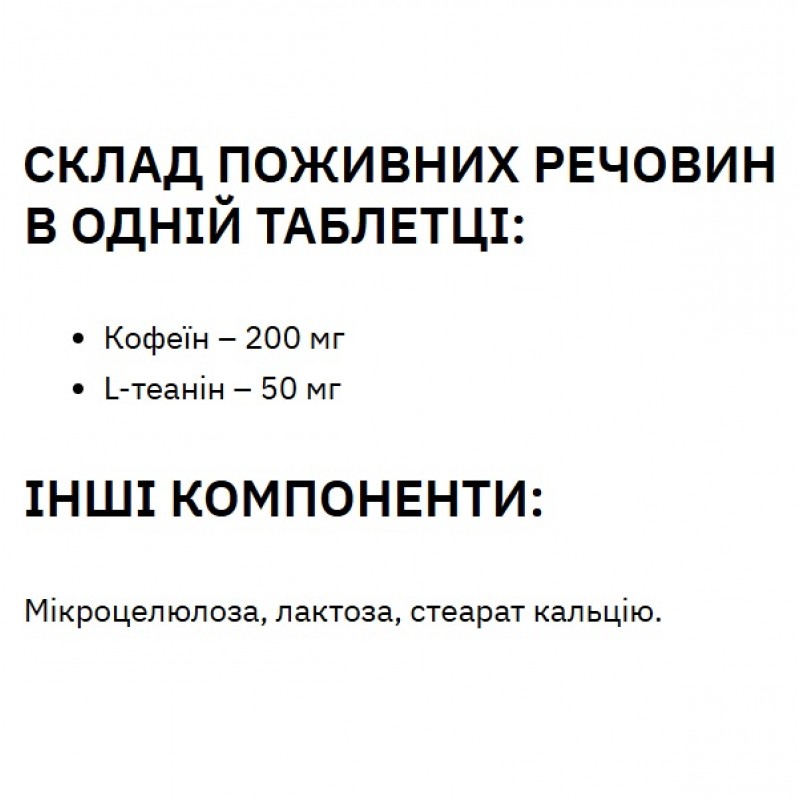Состав одной таблетки Caffeine 200 mg Stark Pharm: