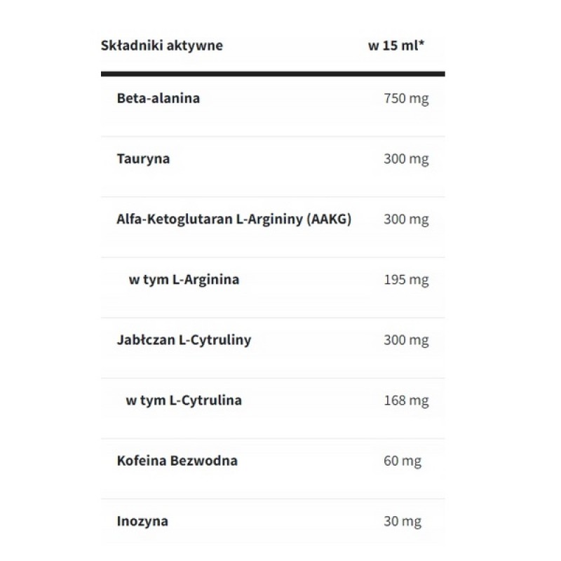 Этот препарат содержит комплекс стимулирующих организм ингредиентов, таких как безводный кофеин и таурин, они безопасно вызовут выброс адреналина, который мобилизует энергетические пути вашего тела для дополнительных тренировок. Если Вы хотите повысить физические показатели и результативность на тренировке, добиться значительного пампинга, повысить работоспособность и выносливость, то данный продукт станет вашим оптимальным выбором в качестве предтренвального комплекса и лучшим помощником в построении красивого тела.