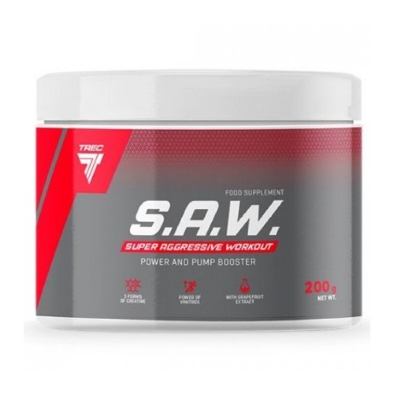 S.A.W. суперконцентрированная формула для принятия до тренировки, предназначенная для профессионалов. Для препарата характерно сильное анаболическое действие и чрезвычайное увеличение объема работающих мышц. S.A.W. обеспечивает им дополнительное снабжение кислородом, питание и импульс для дальнейшего роста. Уникальный комплекс бета-аланина и активных нейростимуляторов повышает выносливость и концентрацию, а также увеличивает энергетические ресурсы организма. Препарат противодействует преждевременной усталости и чрезмерному «закисанию» тканей. S.A.W. способствует увеличению силы и мышечной массы, а также улучшает работоспособность организма во время тяжелых физических нагрузок.