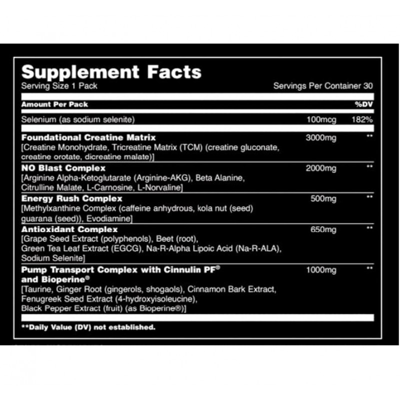 Cочетание креатин этил эфира, бустеров выработки окиси азота (NO), энергетиков и антиоксидантов в одном продукте. Animal Pump от Universal Nutrition содержит все необходимое для проведения мощных, взрывных тренировок. Данный продукт поможет Вам выйти из плато и преодолеть ограничения роста.