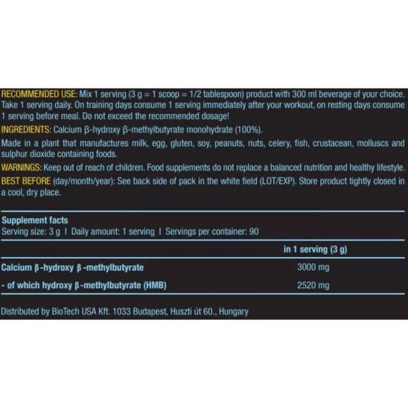 Biotech Ca-HMB 3000 - это источник бета-гидроксиметилбутирата и кальция, который ускоряет восстановление после интенсивных тренировок и предотвращает мышечный катаболизм.