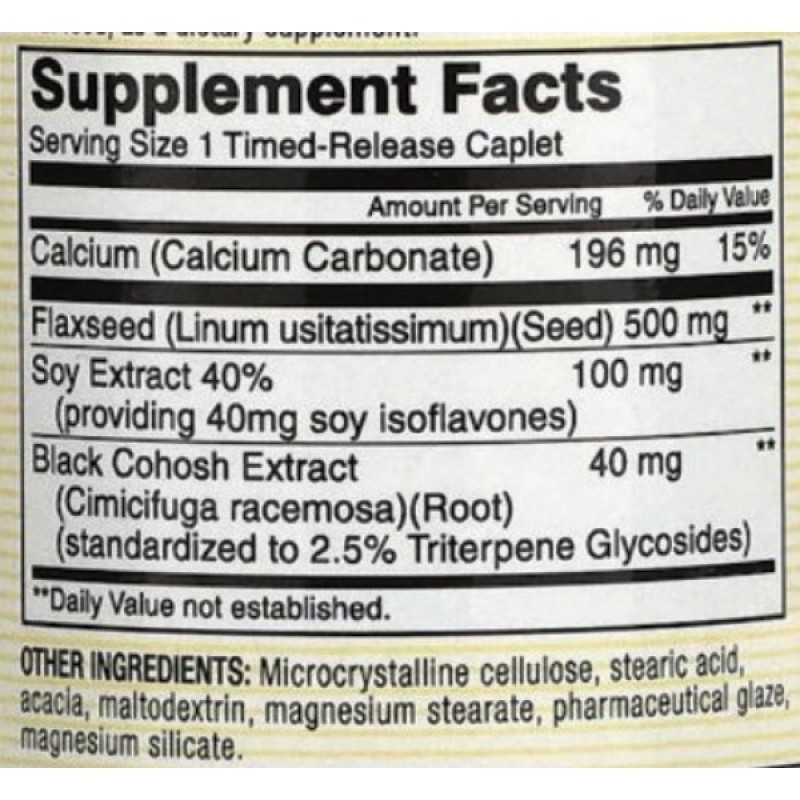 Экстракт черного кохоша — это растительное средство, которое веками используется для лечения симптомов менопаузы. Он помогает снизить частоту и интенсивность приливов, а также улучшить настроение. Семена льна содержат лигнаны, которые являются фитоэстрогенами, то есть они действуют как гормоны эстрогена. Фитоэстрогены могут помочь уменьшить симптомы менопаузы, такие как приливы, ночные поты и перепады настроения. Соевые бобы также содержат фитоэстрогены, а также другие питательные вещества, которые важны для здоровья женщин в менопаузе, такие как белок, кальций и магний.