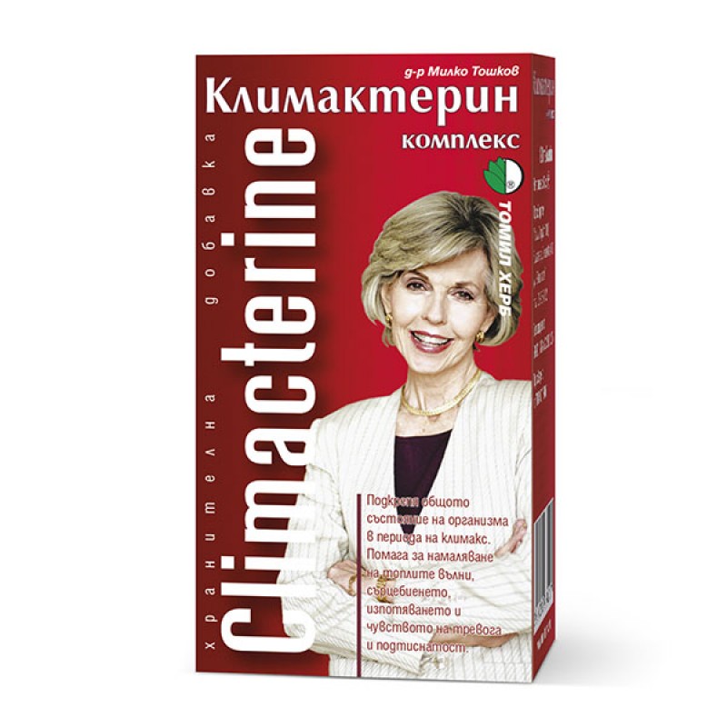 Климактерин (Climacterine) призван помогать женскому организму преодолевать недомогание в климактерический период. Климактерин (Climacterine) снижает или совсем убирает неприятные симптомы и ощущения, обычно сопровождающие климакса. Он уменьшает приливы, снижает потливость, делает сон лучше, борется со стрессом и перенапряжением нервной системы. Природные компоненты в составе Климактерины также оказывают положительное влияние на щитовидную железу, вегетативную и центральную нервную систему. Климактерин является отличным заменителем гормональных средств подобного воздействия потому, что нет побочных эффектов свойственных им.
