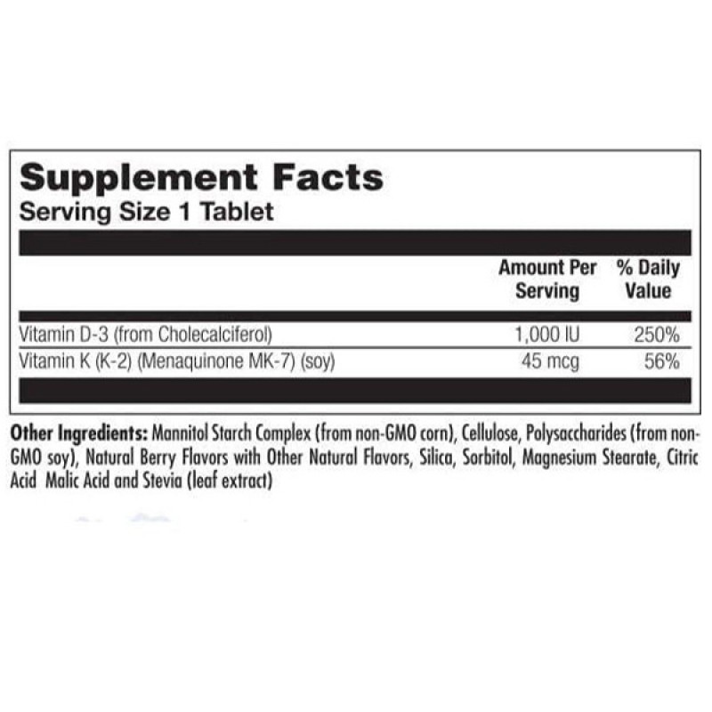 Витамины Д3 и K2 (Vitamin D-3 K-2) применяют для здоровья сердечно-сосудистой системы, а также для формирования и сохранения прочной костной ткани.