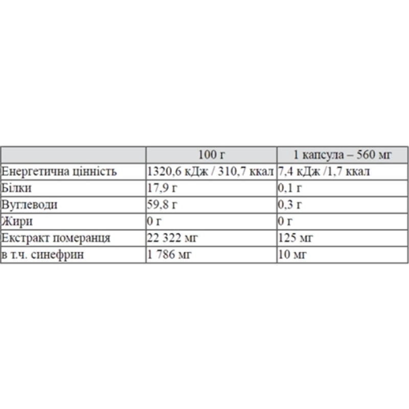 - В одной капсуле содержится 125 мг экстракта померанца (10 мг чистого синефрина – максимальная дозировка, разрешённая законом)