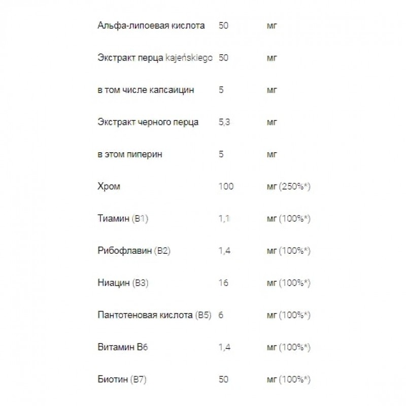 Экстракт кайенского перца - содержит капсаицин, ингредиент, способствующий снижению веса.