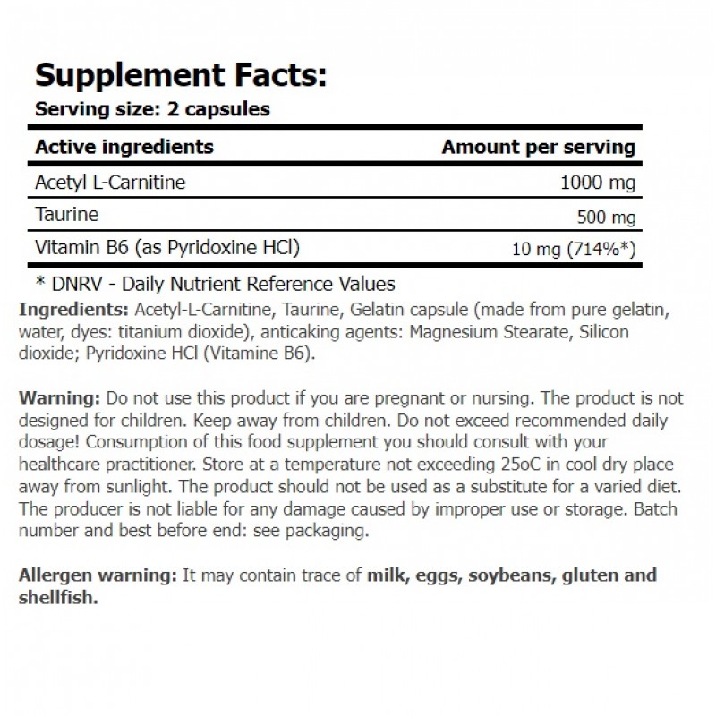 Amix Nutrition ALC with Taurine & Vitamin B6 представляет собой особую комбинацию высококачественного ацетил-L-карнитина, таурина и витамина B6.