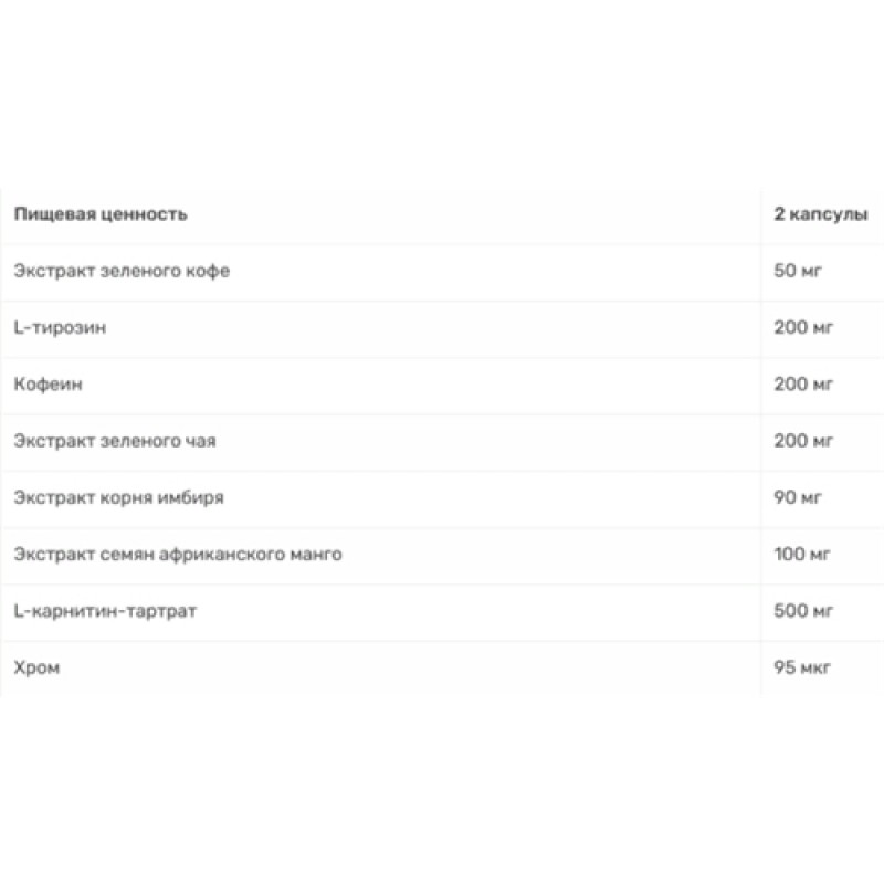 - Экстракт зеленого кофе 50 мг