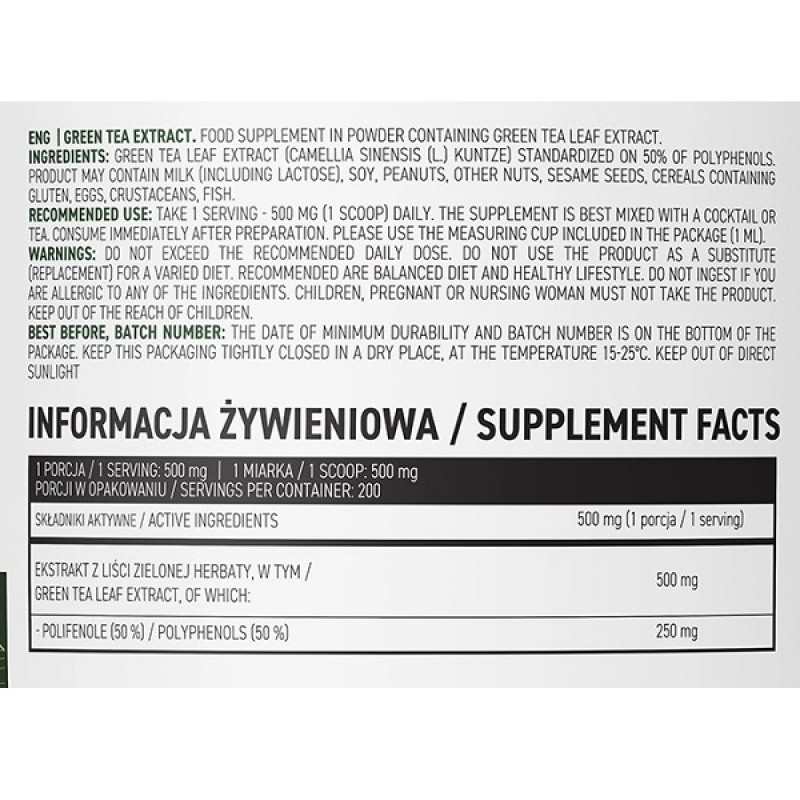 OstroVit Vege Green Tea Extract - это натуральная пищевая добавка в виде порошка листьев зеленого чая. В продукте содержится много полифенолов, которые играют очень важную роль в организме. Зеленый чай мягко стимулирует работу организма, помогает сжигать жировые ткани и поддерживает пищеварение, а также стимулирует работу мозга и обладает очищающими свойствами.