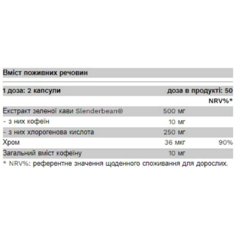 Благодаря капсульной формуле, содержащей 100% натуральный экстракт зеленого кофе Slenderbean®, вы получите максимальную пользу от каждой порции. Каждая капсула содержит 500 мг экстракта зеленого кофе и 10 мг кофеина, что способствует естественному жиросжиганию.