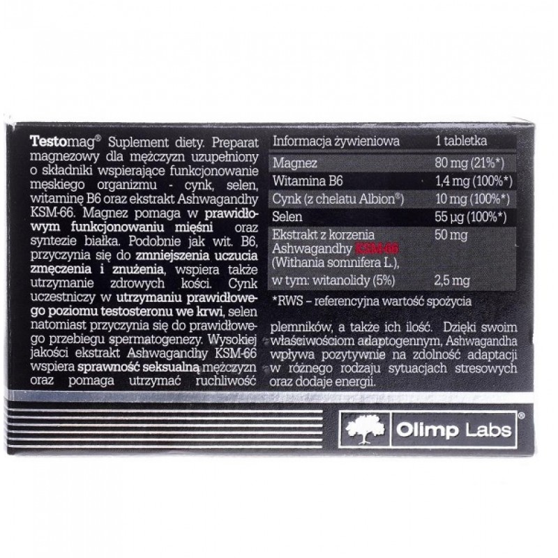 Добавка на основе магния, дополненная ингредиентами, поддерживающими функционирование мужского организма, - цинком, селеном, витамином B6 и экстрактом Ашваганды KSM-66.