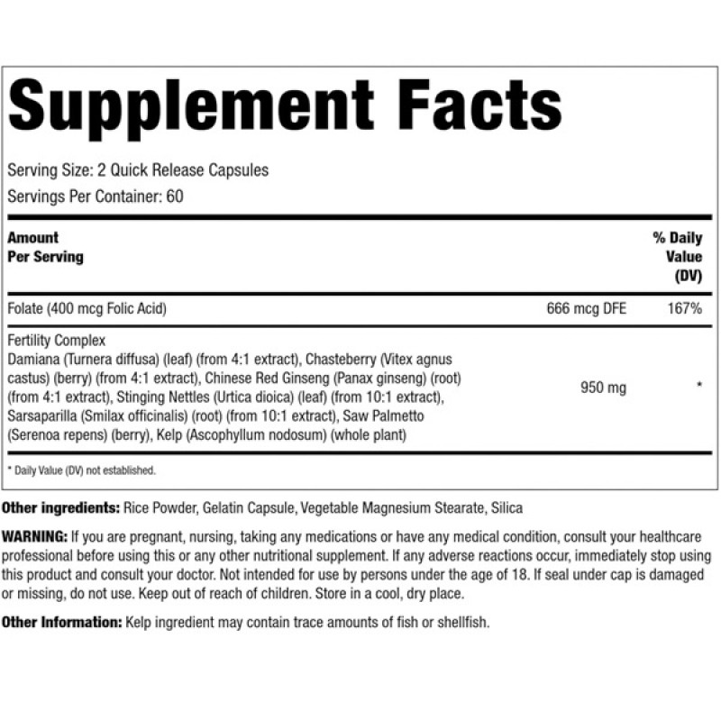 Представляем нашу добавку Fertility Complex! Когда дело доходит до попытки зачатия, здоровый образ жизни играет большую роль. Для женщин мы добавили 400 мкг фолиевой кислоты, чтобы поддержать общее самочувствие и справиться со случайным стрессом из-за напряженного образа жизни. Мы также включили запатентованную смесь традиционных трав, которые давно используются мужчинами для дополнительной пользы.