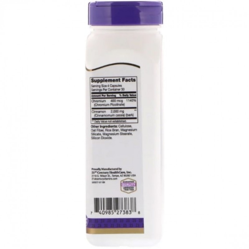 Корица и пиколинат хрома поддерживают нормальный метаболизм сахара и углеводов в сочетании со здоровой диетой и программой упражнений.