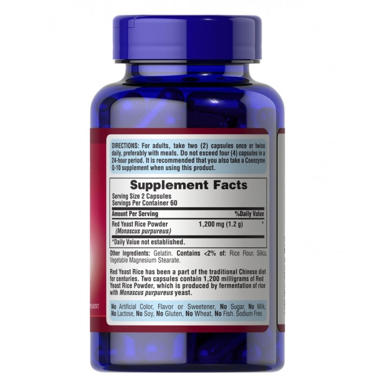 Puritan's Pride Red Yeast Rice 600 mg не содержит искуственных аоматизаторов, красителей и подсластителей, консервантов, сахара, молока, лактозы, сои, глютена, пшеницы, рыбы, натрия.