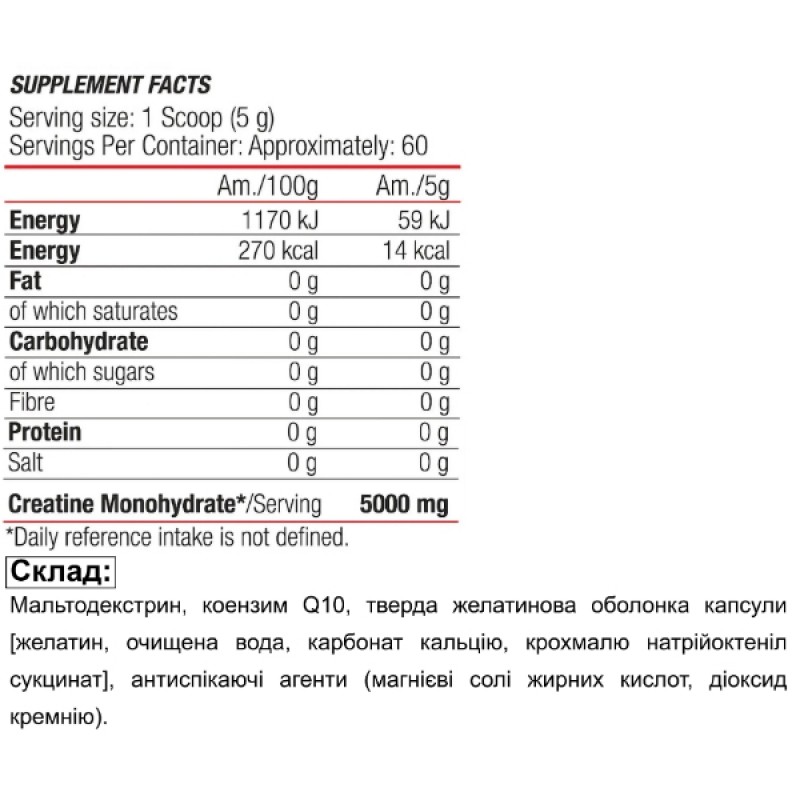 Поддержка креатина: принимайте 1 мерную ложку (5 г) во время еды или сразу после тренировки натощак с белковым коктейлем после тренировки.