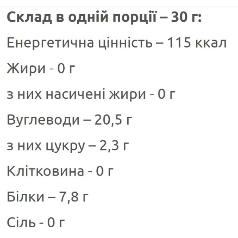 - Размер порции – 30 г = 1 мерный совок.