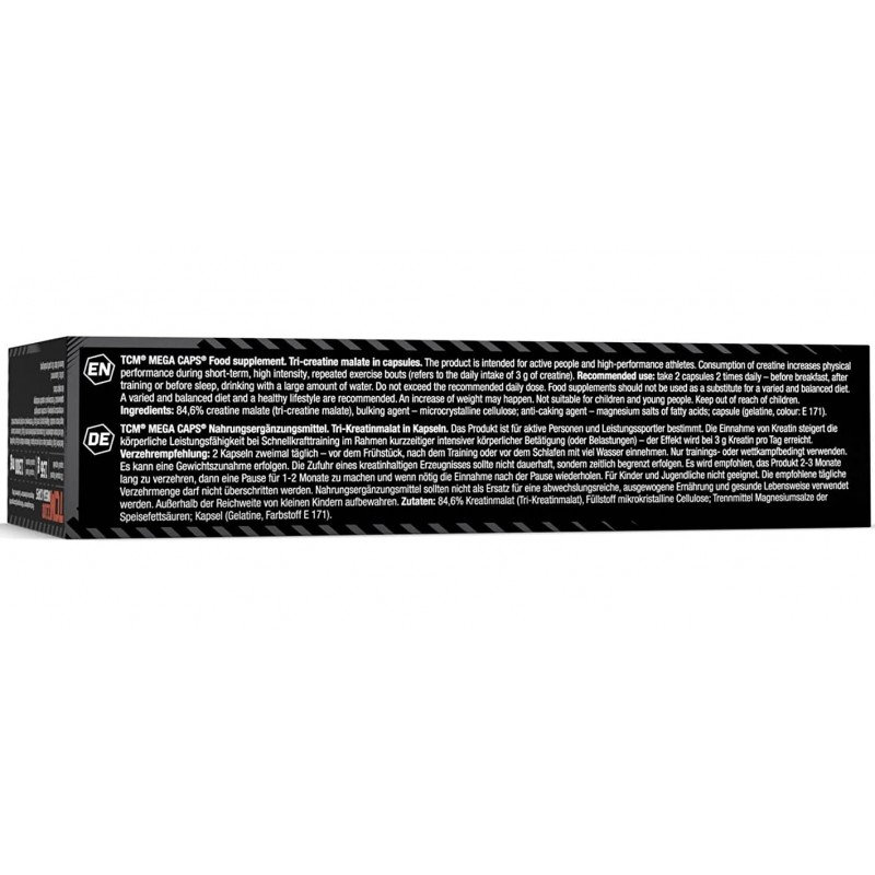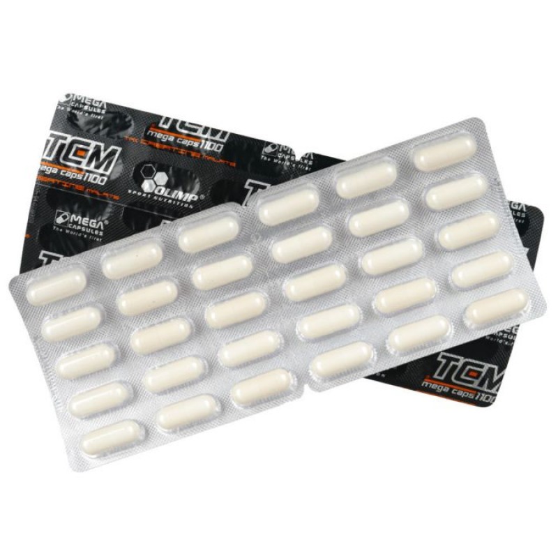 TCM Mega Caps - это активная форма трикреатин - малата. Этот спортивный компонент состоит из трех элементов креатина и малата (яблочной кислоты). Применяется в качестве спортивной добавки, как альтернатива креатину моногидрату. Проведенные биологические исследования показали, что процент его усвояемости выше, нежели у обычной формы моногидрата.