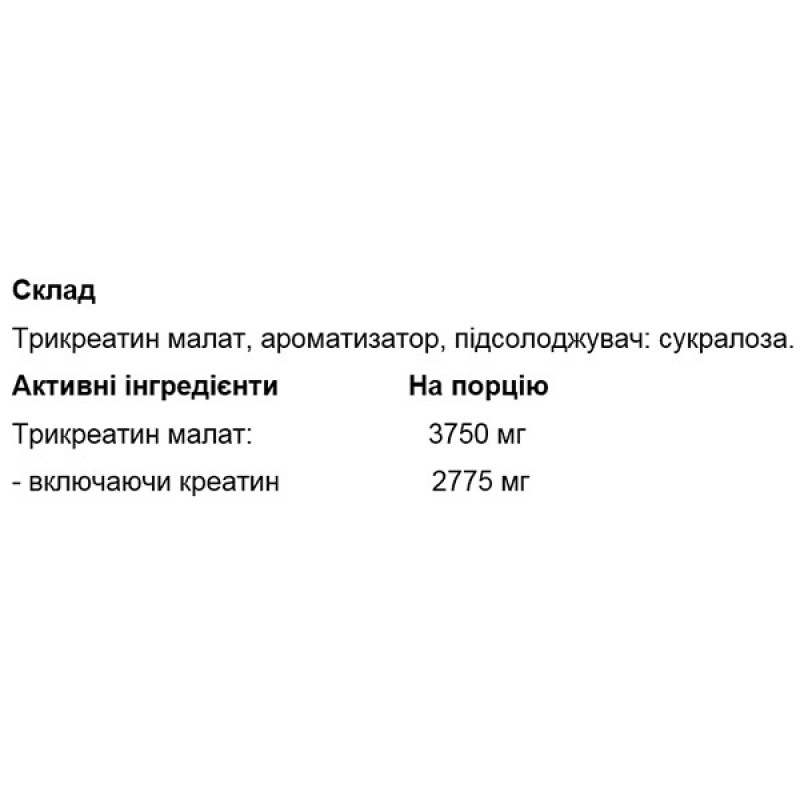 Спортивная пищевая добавка, содержащая высококачественный трикреатин малат, который многократно увеличивает анаболизм, подавляет катаболические процессы и предоставляет эргогенный эффект. Трикреатин малат представляет собой сочетание трех молекул креатина с одной молекулой малата (яблочной кислоты). Присутствие молекулы малата делает вещество более стабильным в кислой среде желудочного сока и в работающих мышечных клетках.