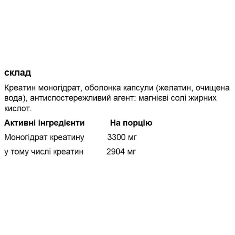 OstroVit Креатин моногидрат 3300 мг – высококачественная пищевая добавка, которая является ценным источником креатина в форме моногидрата. Она выпускается в форме легко глотаемых капсул и разработана для спортсменов и физически активных людей.