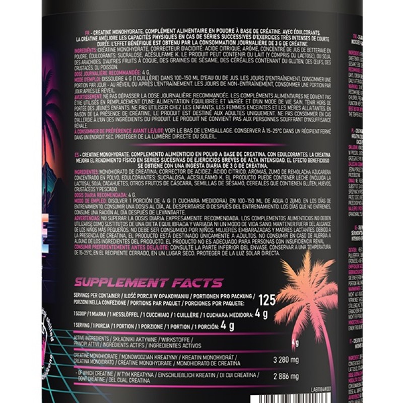 Креатин моногидрат, используемый в препарате OstroVit Креатин моногидрат Miami Vibes, представляет собой соединение молекулы креатина с молекулой воды в одну молекулу – поскольку креатин является гидрофильным соединением, он легко соединяется с водой и, таким образом, представляет собой вещество, которое отличается отличная биодоступность.