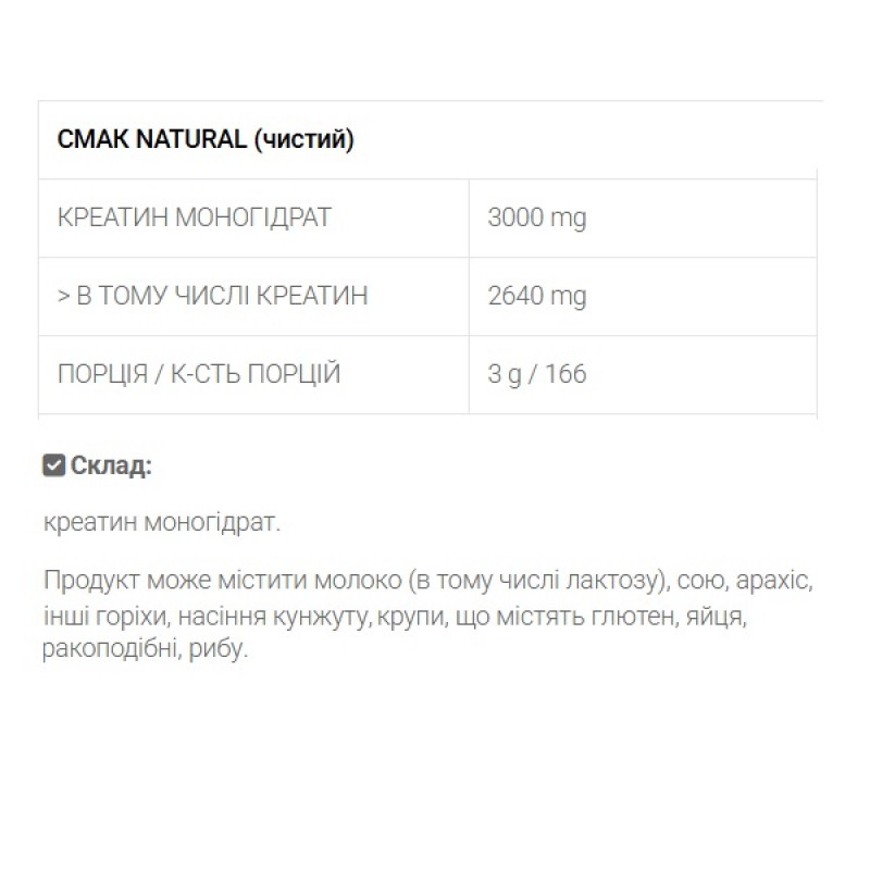 Креатин моногидрат (Creatine monohydrate) - это высокоэффективная спортивная пищевая добавка, содержащая креатин моногидрат, который многократно увеличивает анаболический эффект в мышцах. Креатин способствует росту мышечной массы и увеличению силовых показателей. Он является широко известной и используемой добавкой. Его эффективность подтверждена многочисленными научными исследованиями.
