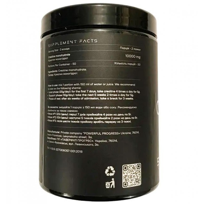 CREA-TOR MICRONIZED от бренда POWERFUL PROGRESS - полностью очищенный креатин моногидрат. Креатин - это натуральный компонент, который находится в небольших количествах в пищевых источниках, таких как мясные продукты или рыба. CREA-TOR прекрасно комбинируется с другим спортивным питанием, что позволяет значительно повысить эффективность добавки и результативность. CREA-TOR MICRONIZED повышает уровень задержки воды в мышечных тканях. Это обеспечивает все необходимые условия для синтеза белков после физических упражнений.
