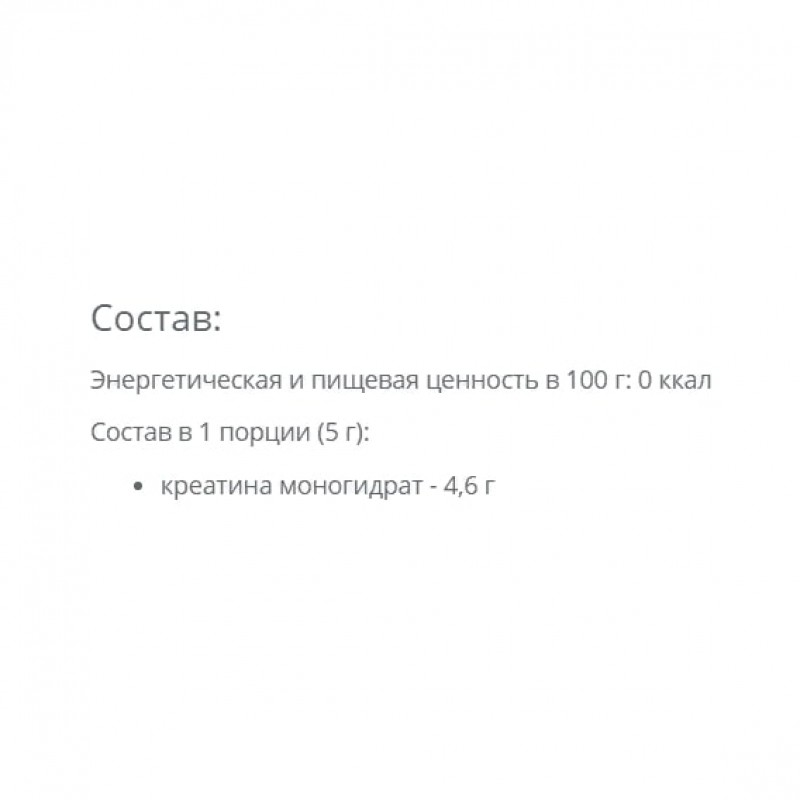 Креатин-моногидрат — это наиболее важная спортивная добавка для увеличения силовых показателей, повышения массы тела и объема мышц. Креатин играет важнейшую роль в энергетическом обмене, поддерживая уровень АТФ в мышечных тканях. Кроме того, креатин способствует синтезу протеина, ускоряет метаболизм и увеличивает общую выносливость организма.