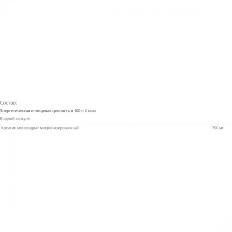 Креатин моногидрат - одна из самых популярных пищевых добавок для спортсменов, а так же наиболее эффективная и популярная форма креатина. Creatine Monohydrate играет важнейшую роль в энергетическом обмене, поддерживая уровень АТФ в мышечных тканях. Обычно человек расходует около 2 г креатина в сутки, однако в условиях высоких физических нагрузок во время тренировок его потребление существенно возрастает. Дефицит креатина ведет к физическому утомлению.