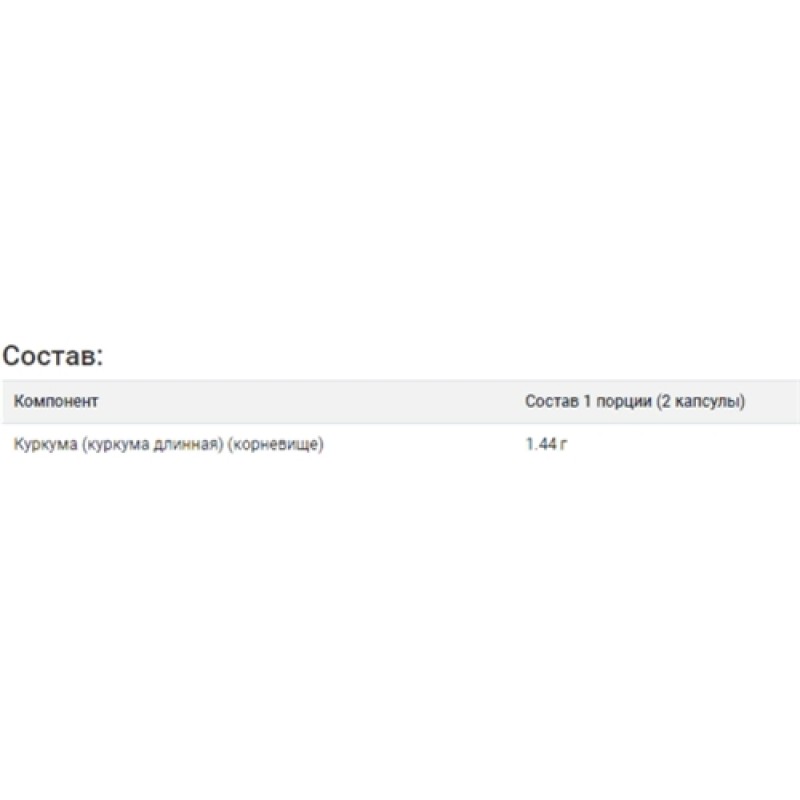 - Компонент: Состав 1 порции (2 капсулы)