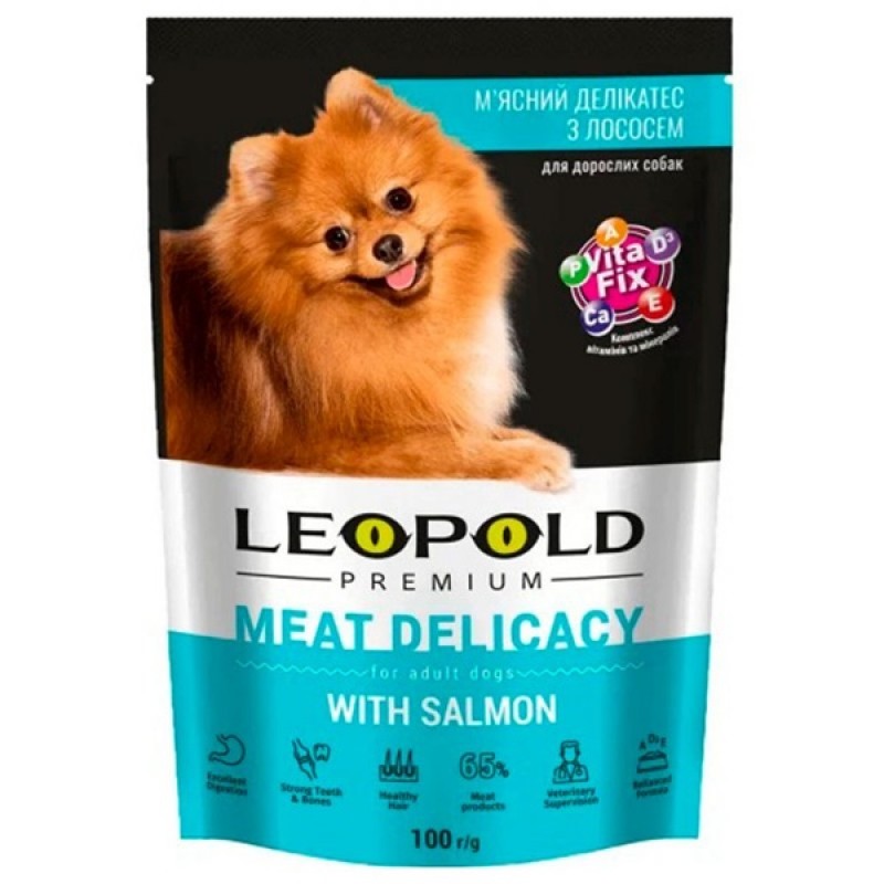 Полнорационный влажный корм обеспечивает любимца необходимыми витаминами, минералами и питательными веществами, поддерживает здоровье его внутренних органов, а также кожи и шерсти. Компания "Леопольд" использует лишь экологические продукты в производстве кормов, которые не содержат в составе сои, консервантов и аттрактантов, ароматических красителей и усилителей вкуса.