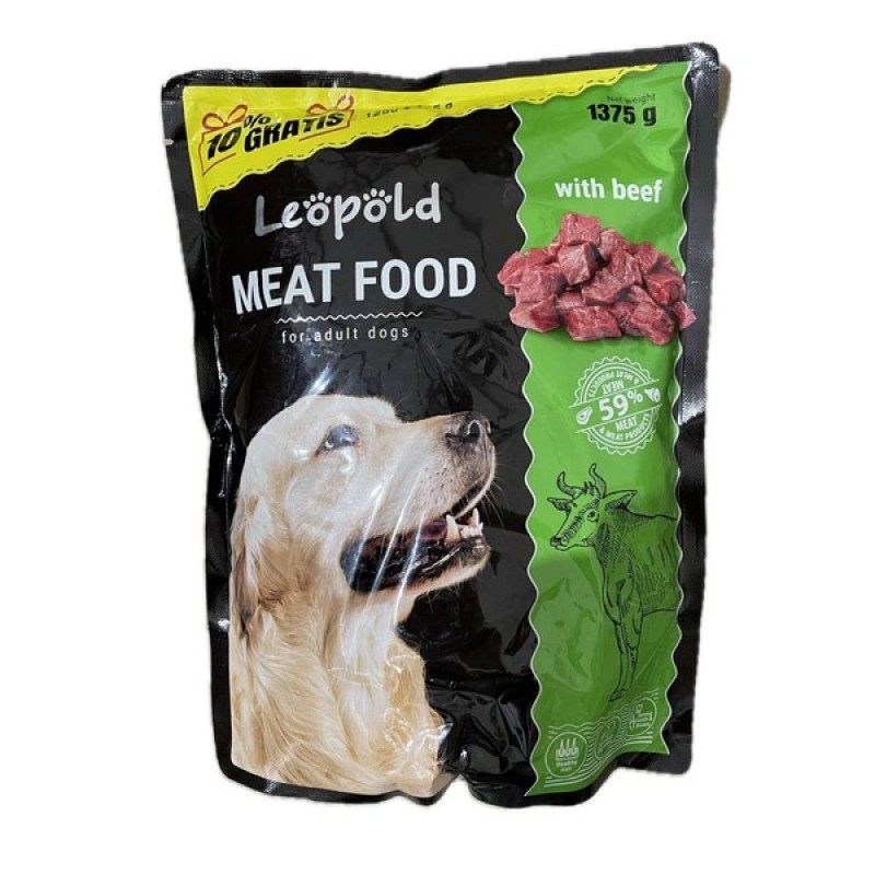 Леопольд Meat Food With Beef обеспечивает полноценное питание для вашей собаки и помогает поддерживать его здоровье и жизненную активность.