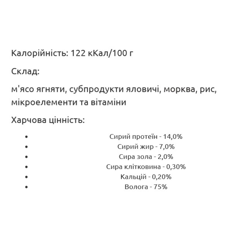 Корм эконом-класса для полноценного ежедневного питания домашних любимцев. Белок, который содержится в мясной составляющей корма и необходимое содержимое жира обогащают организм животного, предоставляют ему силы и активности в течение целого дня. Натуральный корм в консервированном виде для Вашего любимца не содержит красителей, ароматизаторов и сои, изготовленный только из натурального мяса и мясных продуктов. Рекомендовано подавать к употреблению корм при температуре не ниже от комнатной.