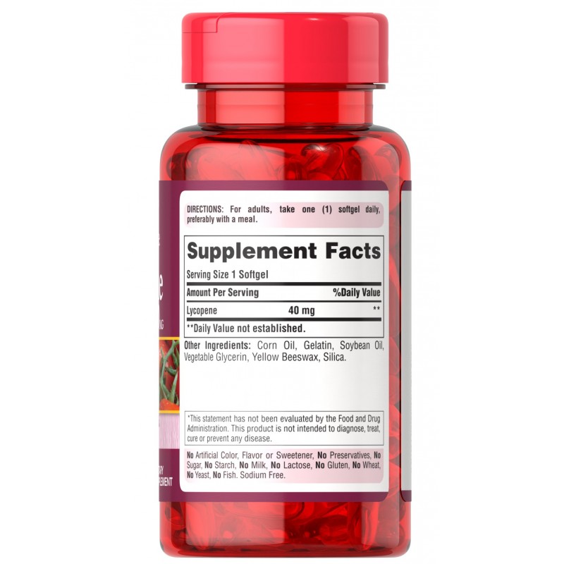 Соевое масло, желатин, кукурузное масло, растительный глицерин, желтый пчелиный воск, экстракт томатов (Lycopersicon esculentum) (фрукты), содержащие ликопин, ликопин, dl-альфа-токоферол.